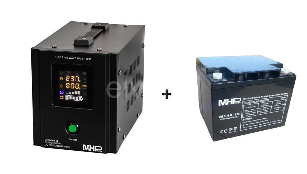 Záložní zdroj s čistým sínusovým výstupem pro oběhové čerpadlo MHpower 300W s externí bateríí MHPower 12V 40Ah.
