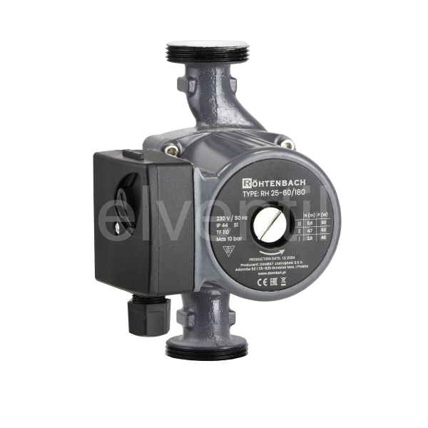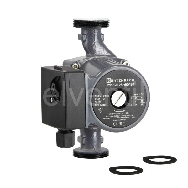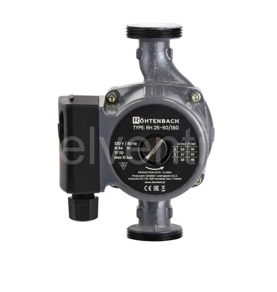 Čerpadlo pro pitnou vodu ROHTENBACH 25-60 180 je určeno pro cirkulaci teplé vody. Těleso čerpadla pro pitnou vodu je vyrobeno z litiny, vrchní vrstva antikorozní smalt. Čerpadlo pro pitnou vodu je vybaveno 3 rychlostním přepinačem otáček motoru. Součástí balení je těsnění viz. foto.